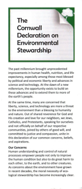 - Cornwall Declaration on Environmental Stewardship "signed by over 1,500 clergy, theologians, policy experts and other people of faith, including such well-known leaders as Dr. Charles Colson, Dr. James Dobson, Rabbi Jacob Neusner, Dr. R.C. Sproul, Fr. Richard John Neuhaus, and Rev. Dr. D. James Kennedy"