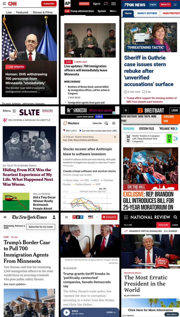 - what: screenshot of front pages for 2026/02/04